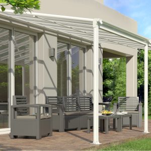 Sin embargo versión económica de la pérgola con construcción ligera. Es un techo corredizo, sin vigas de apoyo. Se monta en bastidores acabados o se coloca entre dos superficies verticales. Una gran opción para soluciones arquitectónicas no estándar.